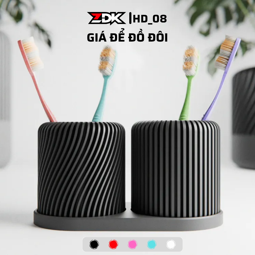Khay đựng phân chia ngăn hợp lý: 2 ngăn đứng riêng biệt giúp cắm bàn chải, kem đánh răng hoặc dao cạo râu, giúp tránh nhiễm khuẩn chéo và giữ khô ráo.