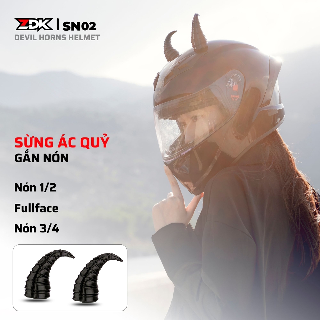 Thiết kế sừng ác quỷ mạnh mẽ, cá tính – phù hợp mọi loại nón.