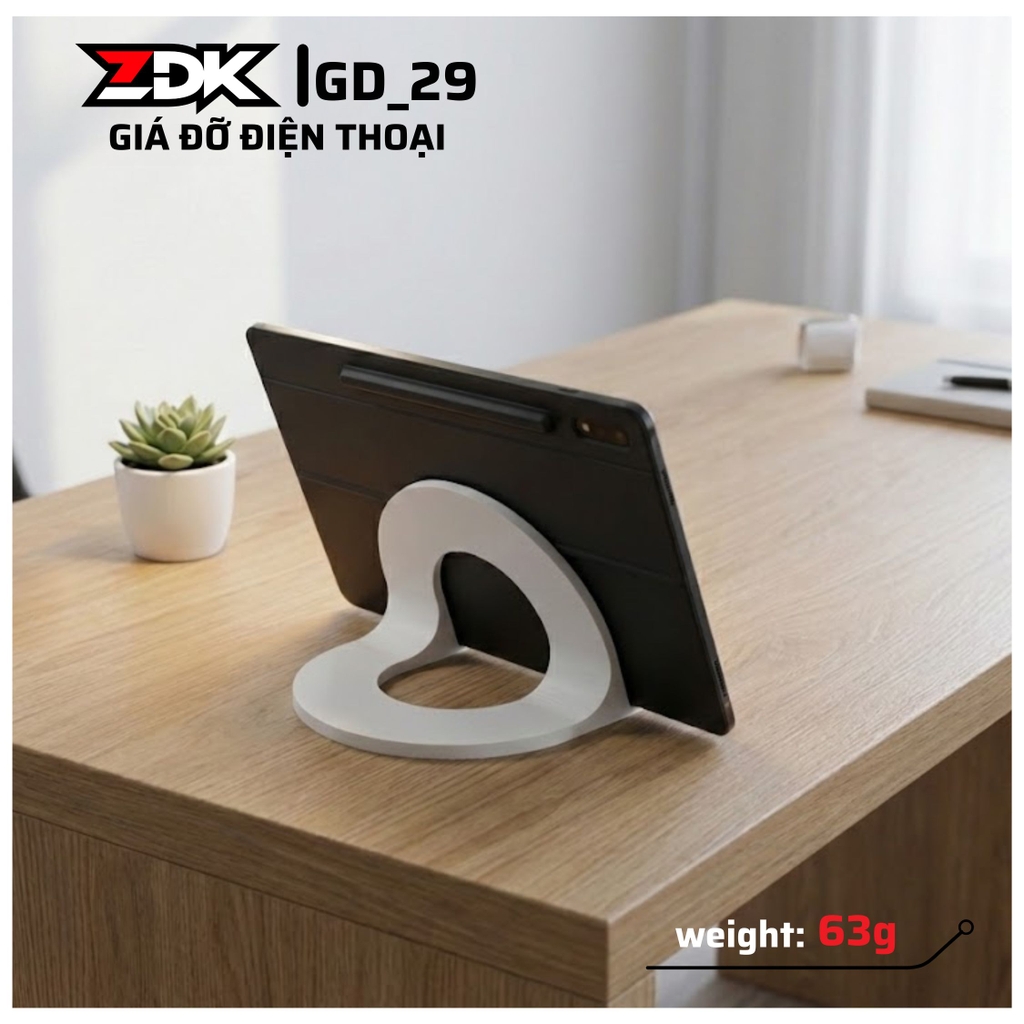 - Giá đỡ điện thoại GD_29 là mẫu giá đỡ để bàn có thiết kế bo tròn hiện đại, tối ưu sự chắc chắn và tính thẩm mỹ cho không gian làm việc hoặc sinh hoạt hằng ngày.