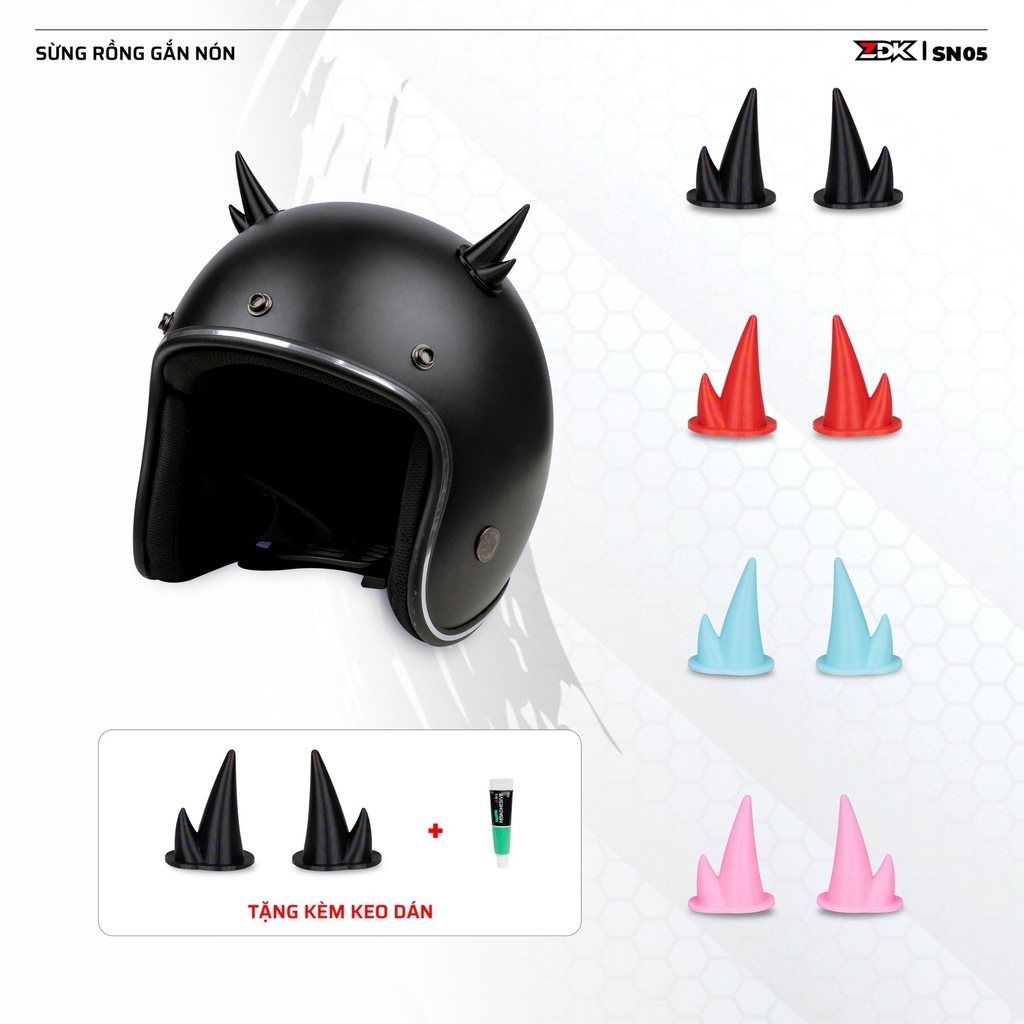 - Sừng rồng gắn nón SN05 là phụ kiện trang trí độc đáo dành cho nón bảo hiểm, giúp người dùng tạo điểm nhấn cá tính và khác biệt khi di chuyển.